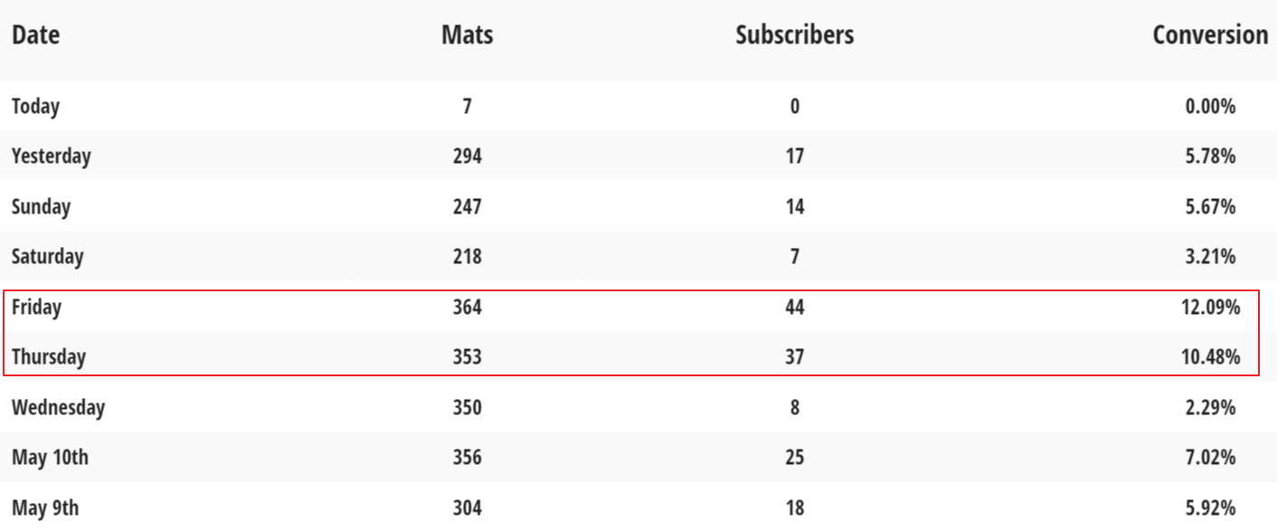 The content upgrade has an average conversion rate of 7.61% (peaking at 16.67% on May 13th) ā