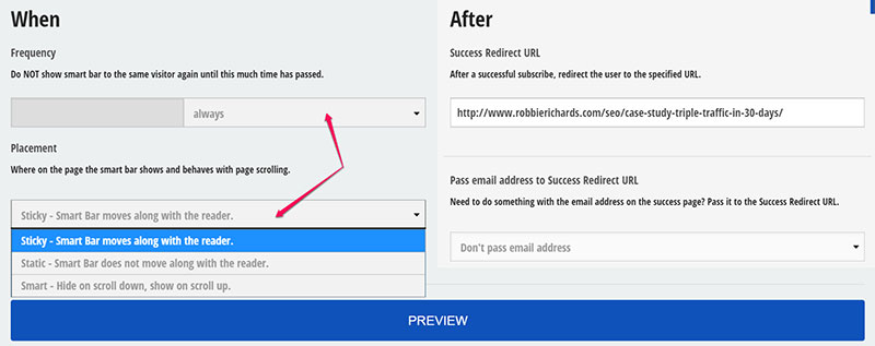 You can also set up A/B tests and target Smart Bars to specific content and device types just as you did with the other form types.