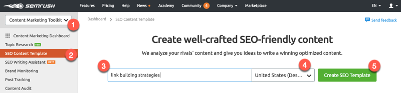 Perform content audits, build content templates, find new topic ideas, use the content analyzer to uncover on-page opportunities, and order articles from a marketplace of verified writers.