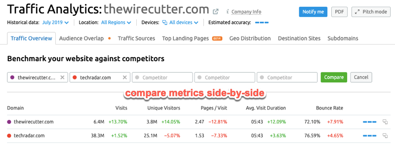 Get an unfair behind-the-scenes look at your competitor's SEO, PPC, and overall online traffic strategy. Use the insights to build campaigns with a proven track record of success.