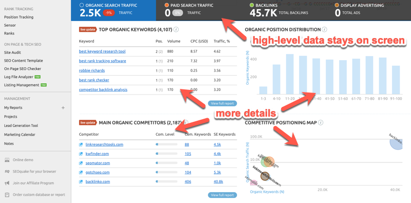 We'll jump into practical applications for each SEMrush Toolkit in the review below, but here is a quick overview of each one: