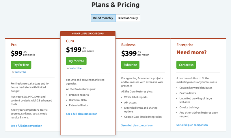 SEMrush Free Trials: Test Drive SEMrush PRO for 30 Days, GURU for 14 Days or PRO + Traffic Analytics for 14 Days