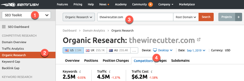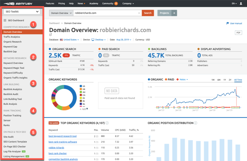 In this review and tutorial, we’re going to cover the entire SEMrush Toolset. But we’re not going to focus only on features – I’ll also show you how to leverage each toolkit to drive immediate value for your business and/or clients.