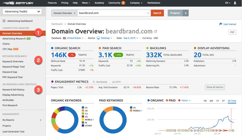 Now, it is truly an all-in-one digital marketing platform comprised of numerous Toolkits designed to help you succeed across different areas of your campaign - SEO, Advertising, Content Marketing, Competitive Research and Campaign Management.