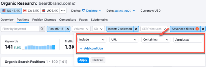 For example, you could add an advanced URL filter and drop in the subfolder – eg: /products – that contains your most valuable content to narrow the focus quickly: