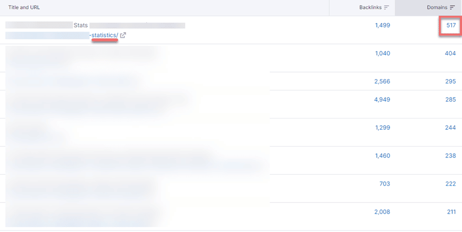 Check the Domains column for each URL. If you see multiple URLs with 100+ backlinks, it’s likely a great linkable topic.