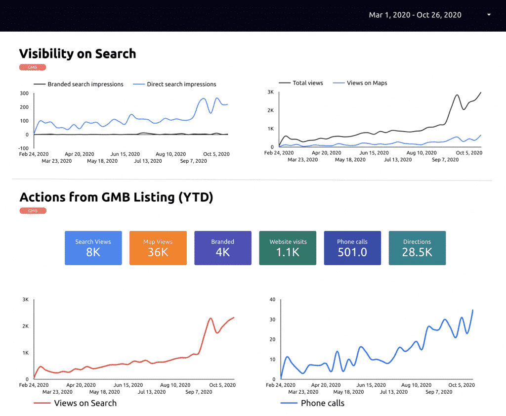 Having accurate data is critical to making informed decisions. In addition to lacking granular data, GMB insights doesn’t provide a ton of historical data. You can offset this to some extent using Google Analytics and Google Data Studio.