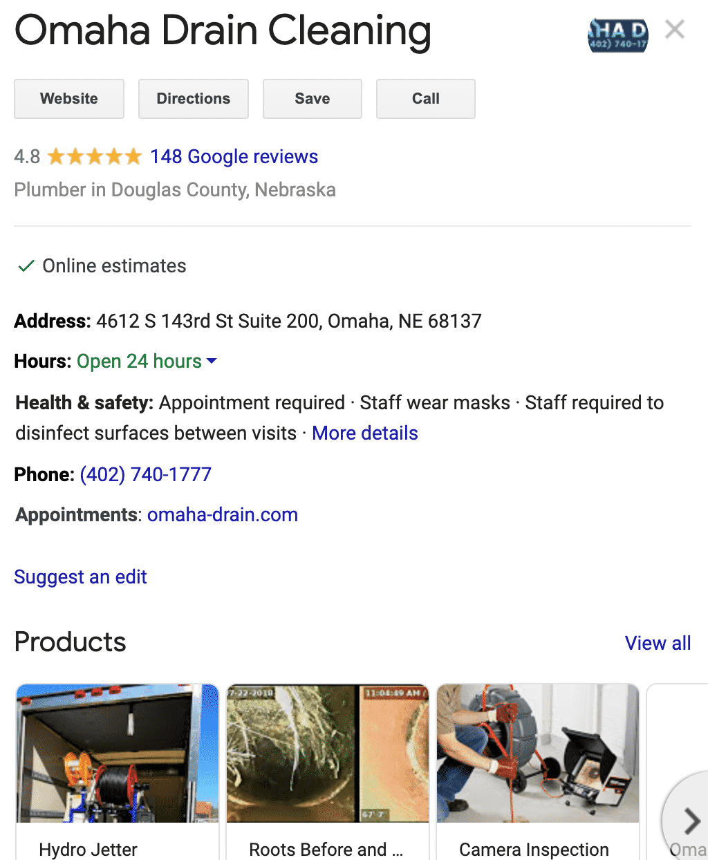 Here’s a great example from Omaha Drain Cleaning, who despite serving a very specific area and industry has successfully built up almost 150 positive reviews!