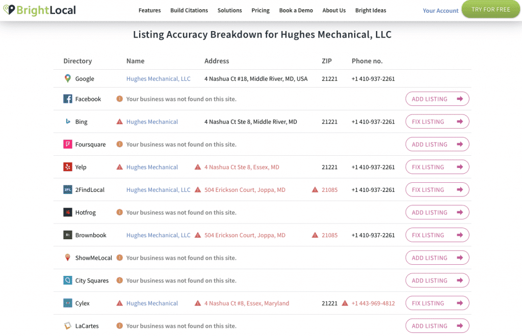 The first step is to use Bright Local’s Local Listings Health Scanner to see just how inaccurate your business listings and citations are.