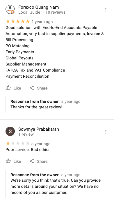 - Replies you responded with to their reviews