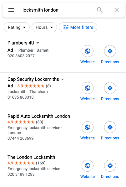 If you want to take a shortcut to the top of the Google Maps results then you can use Google Ads’ location extension to appear above the organic Maps results for your target keyword.