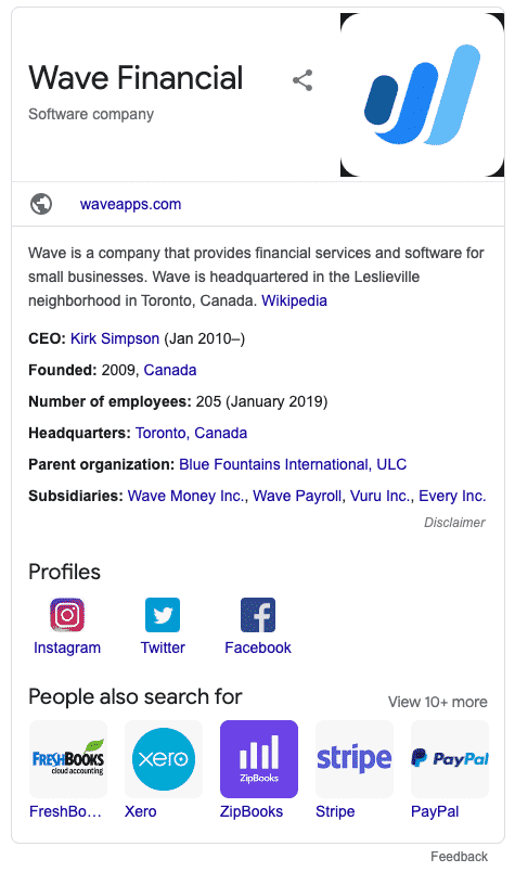 As Wave Financial’s Google Business listing shows, it might also include information you’d rather it didn’t show – like links to your competitor’s sites: