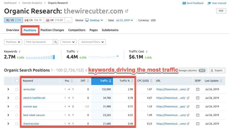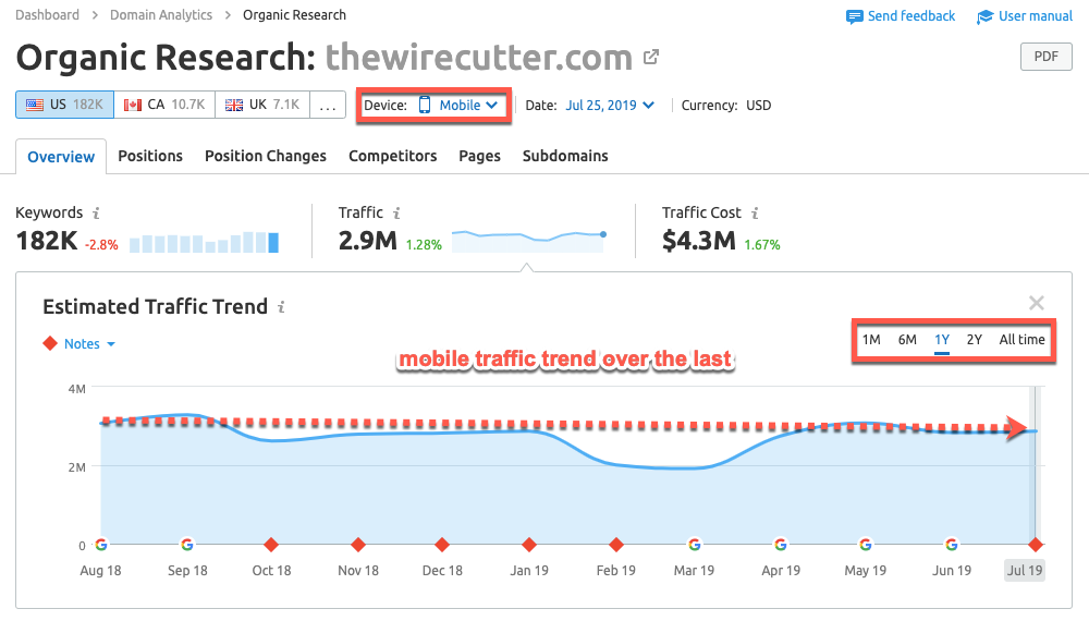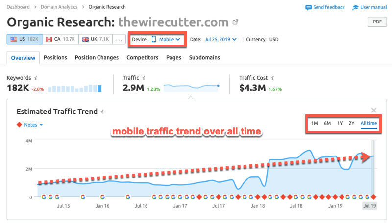 It’s important to remember that these reports are estimates because SEMrush does not have access to every website’s internal analytics.