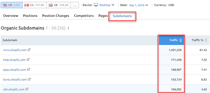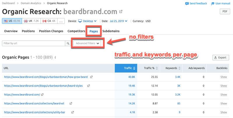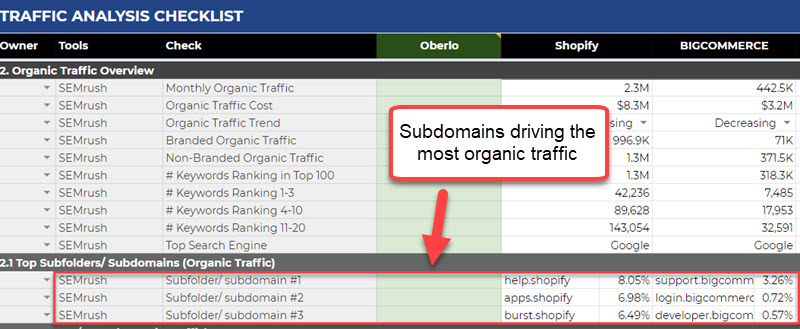 - If you run an Ecommerce store, then you’d want to drill down into the product category subfolders to see how competitors are driving website traffic with a high level of commercial intent.