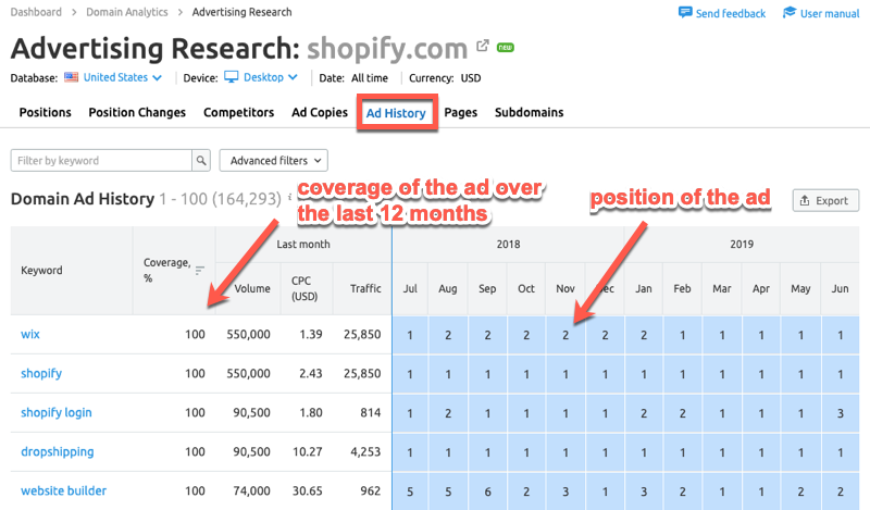 In our example, you can see that over the last 12 months Shopify acquired the most traffic from referrals.