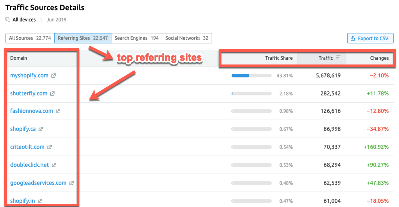 But, if we look at the actual estimated traffic from referrals of non-Shopify sites – rather the Traffic Share % – you can see it's a significant number.