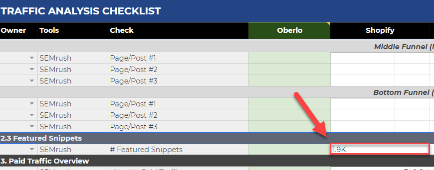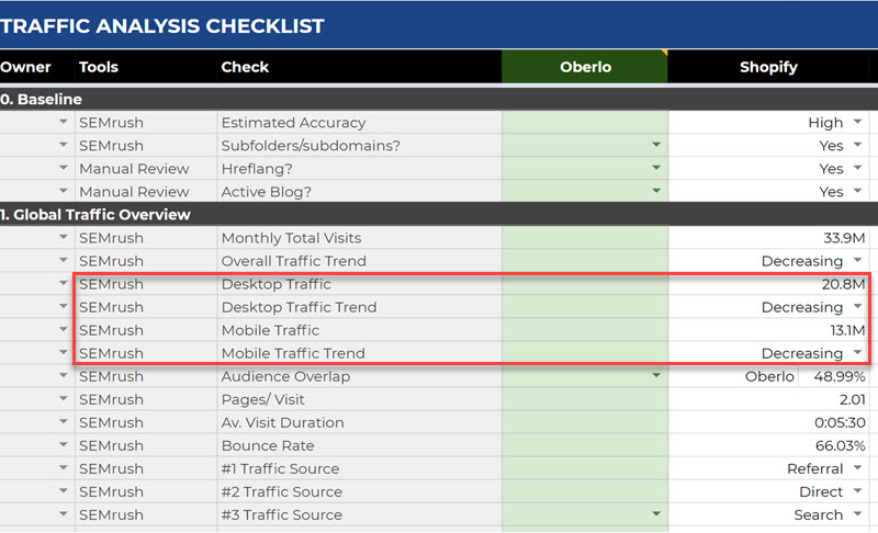 - Free traffic analysis template (below).