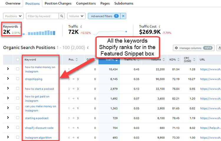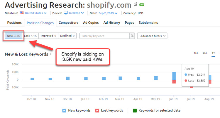 Note: Again, while the paid percentage appears small, it’s worth noting that Shopify is investing a lot in Paid Ads, and is now driving over 372,000 paid search visits a month!