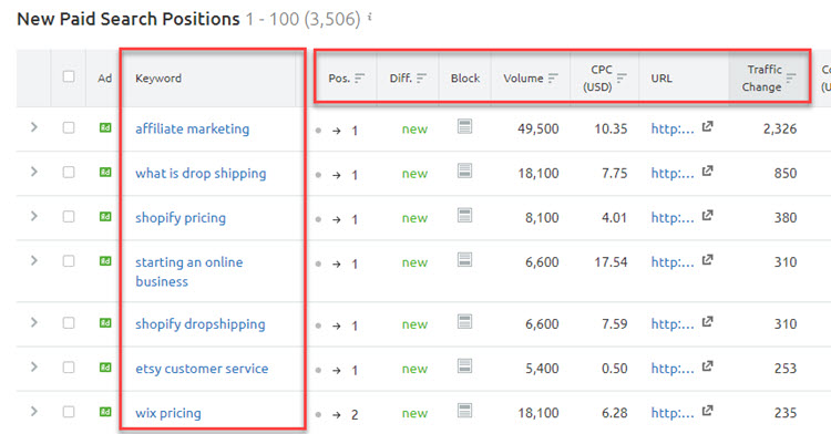And on the right, you can see the Traffic Count, Traffic Share and Change percentages.
