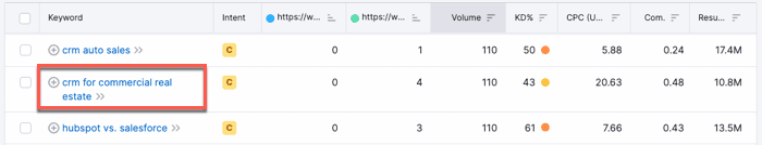 You’re looking for keywords that you could use to optimize your page. For example, maybe you can sprinkle some secondary keywords in the body copy and subheaders or even add a new section or subsection, like an FAQ, to target a specific term more effectively.