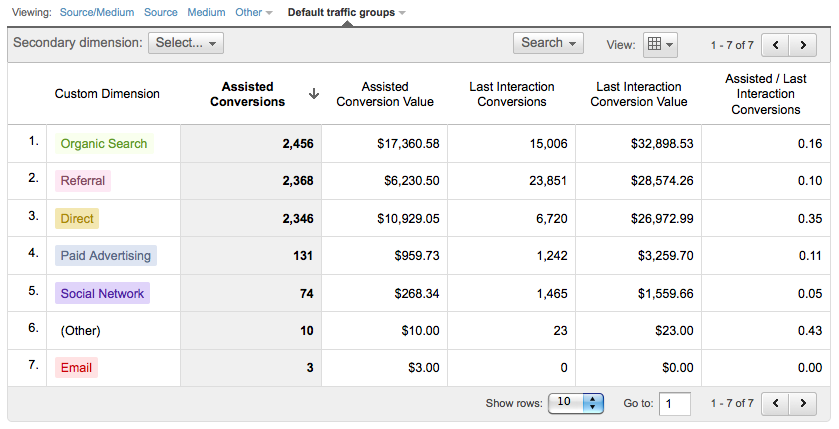 We may also compare metrics from one channel to another so we can show how much a sale or enquiry costs via social ads, paid search or organic search.