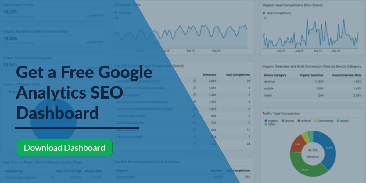 Don't want to play with dimensions and filters? To save you some time, I looked at all the SEO metrics mentioned by the experts and created a custom Google Analytics SEO reporting dashboard. You can download the dashboard, connect it to your Google Analytics account and have a professional SEO report for your business and/or clients in seconds. Click the image below to import it directly into Google Analytics account. |