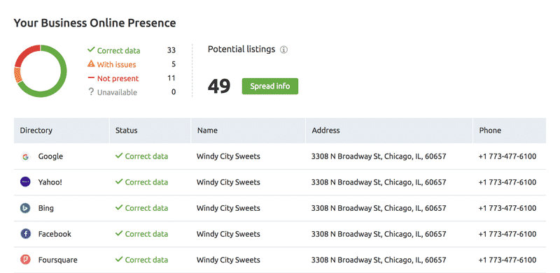 Simply enter or adjust your NAP details in one place to maintain consistent and correct information in all the leading directories across the web.
