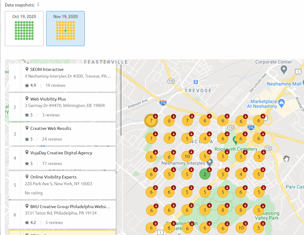 Semrush also recently launched a local heatmap ranking view for your website and competitors at different locations around your office and city centroid: