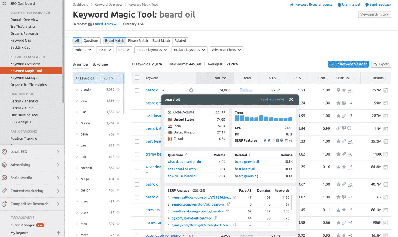 Editor’s note: There’s a reason that Semrush was voted the best keyword research tool by over 130 SEO experts — it provides the largest, and arguably, the most accurate keyword database of any tool on the market.
