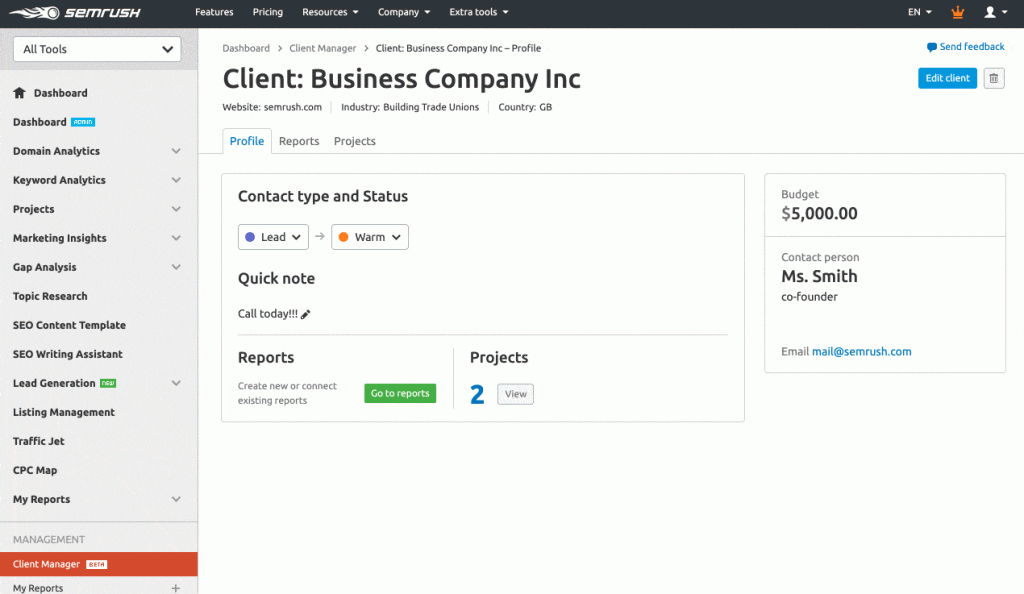 It’s no surprise that Semrush is the top-rated rank tracker and a popular choice for agencies who need to track rankings for a range of global and local clients.