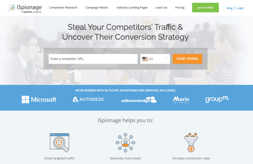 Like SpyFu, iSpionage is a PPC and SEO competitive analysis tool that provides deep insights into competitor keywords, ads, bidding strategies, budgets, and more.